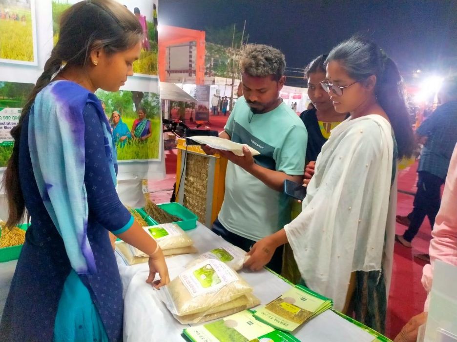 At the Regional Agriculture Fare and the Loka Mohatsav, Balangir, the Puintala Farmers Producer Company also presented varieties such as CR Dhan 315, DRR Dhan 48, and Telangana Sona (developed by CRRI, IIRR, PJTSAU). Despite being priced at ₹100 per kilogram, more than double the usual market rate of ₹40–45, their products drew strong interest from buyers eager for rice with added health benefits.